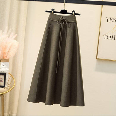 • Solid Color High Waist A-Line Pleated Long Knitted Skirt