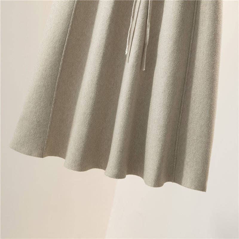 With a high waist fit, this long skirt has an A-line shape that creates a sophisticated look that can be dressed up or dressed down. The pleated design adds texture and movement to the skirt, while the solid color makes it easy to pair with different tops. Made from knitted fabric, this skirt is both comfortable to wear and slightly stretchy for a better fit. Perfect for colder weather, this skirt can easily be paired with tights and boots for a cozy and stylish outfit.