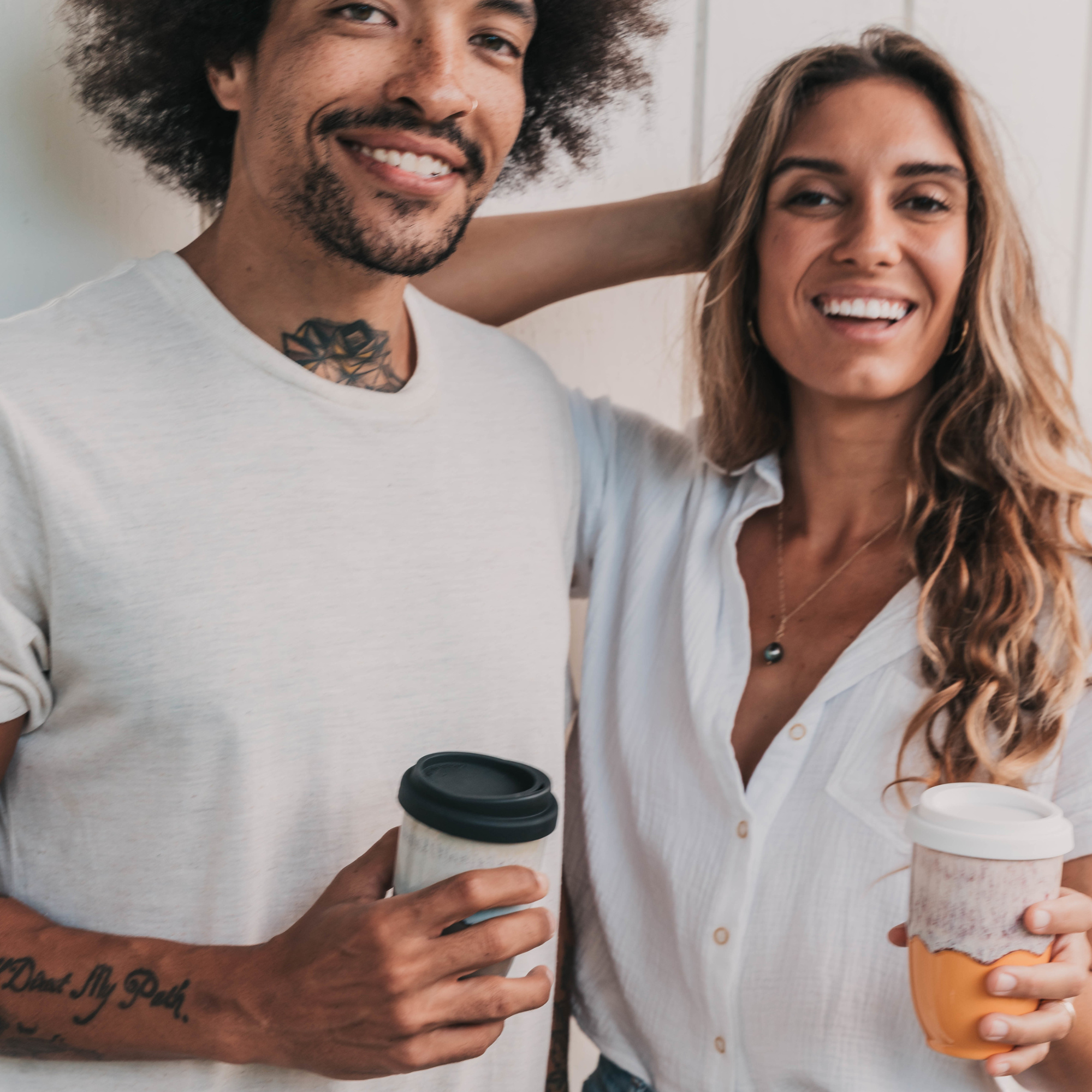 Elevate your mornings with our exquisitely crafted, reusable coffee cups! Each piece showcases a unique glazing process, ensuring no duplicates. Embrace the artistry of individuality, making every mug distinctly yours. Capacity: 12 ounces / 355ml Size: 4.7 x 3.1 Inches / 12 x 8cm Microwave & Dishwasher Safe Whether on-the-go or at home, our mugs come equipped with a silicone lid and heat band, adding convenience to your daily routine. Cleaning is a breeze; simply toss them in the dishwasher without worrying about wear or coffee stains. With high-quality ceramic, relish uncompromised taste like never before, unlike stainless steel or plastic alternatives. Start your day with a burst of color and flavor – choose our captivating coffee cups!