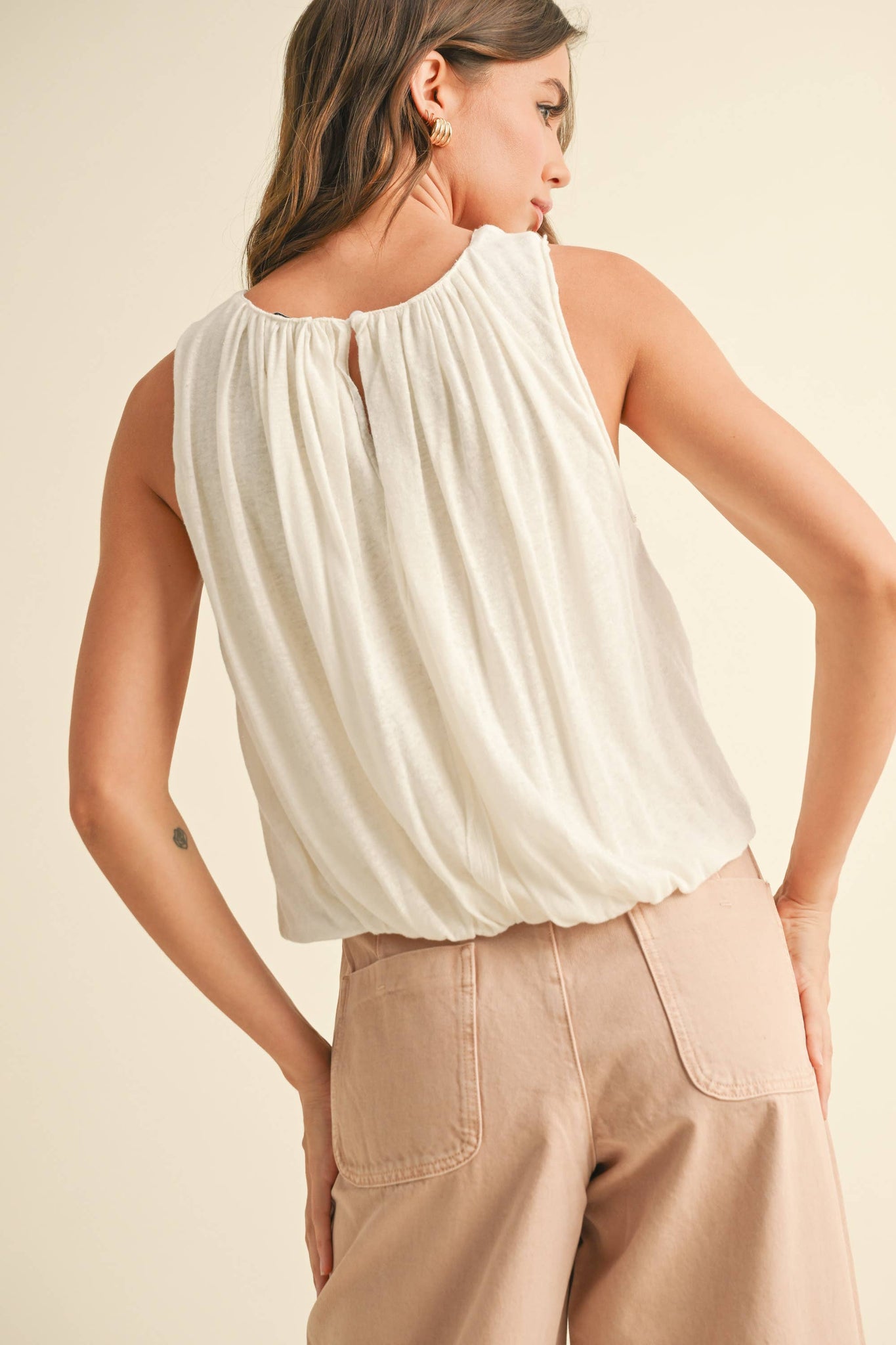 MIOU MUSE - T4577 LINEN KNITTED BUBBLE BOTTOM TOP