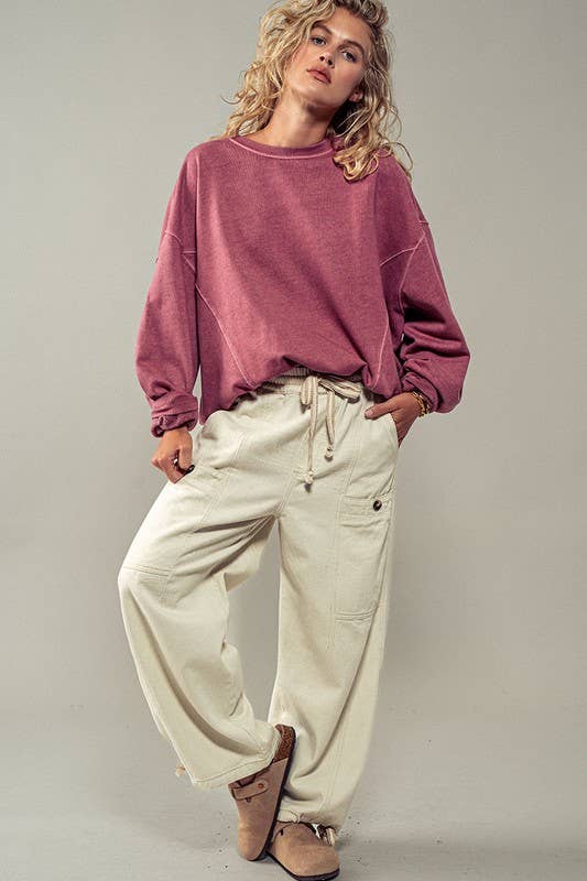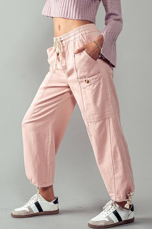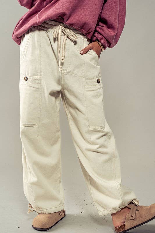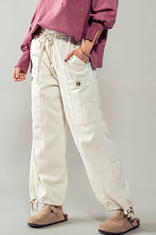 Cargo Utility Pants with Drawstring Waistband and Adjustable Hem